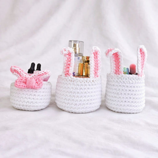 Pack 3 pièces panier lapin rose